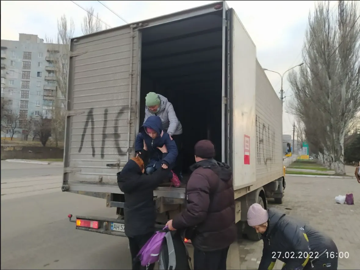 В нашому будинку в Сартані була частково зруйнована покрівля, вікон не було, в середині будинку постраждало декілька кімнат. Було потрібно прибрати все, полагодити і я все це зробив. Потім впевнився, що всі хлопці мої, яких шукав та чекав, живі і 30 березня ми зустрілись, а вже 4 квітня ми виїхали з родиною з Сартани. Вибиралися через Урзуф, Бердянськ, Токмак, Пологи на Запоріжжя. Проїхав 18 блокпостів! Обшукували особисті речі та машину, передивлялися телефони. Гроші не вимагали, може через те, що в мене діти були в машині. Я їхав сам, без гуманітарного конвоя, вирішив: як буде, так буде.