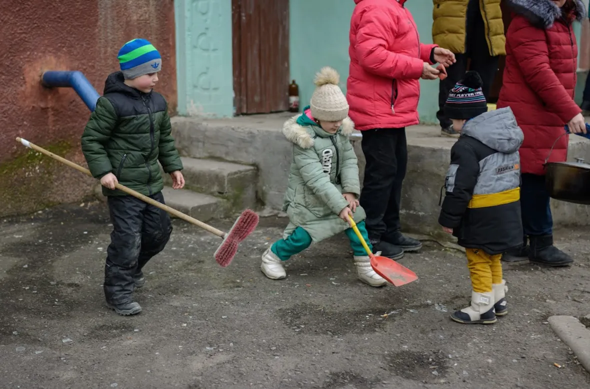 Коли місто було майже все захоплене та опір чинили тільки військові на «Азовсталі», з’явилися польові кухні від днр. Така стала й неподалік нашого будинку. Зрозуміло, що мені було огидно там брати їжу, але просто не мав вибору. Підійшов до кухні, розповів про ситуацію. Коли кухар почув про дітей, розчулився, розповів про себе, що не військовий, що мобілізували примусово, навіть автомат у нього дерев’яний. І так, щоб ніхто не бачив, дав мені згущене молоко та печиво, ну й, звісно, кашу, яку вони там варили. Іще пізніше повезли гуманітарні набори фурами. На коробках літера «Z» та напис «Своих не бросаем!» Щоб отримати цю «допомогу», треба було відстоювати величезні черги. Але ми відстоювали й брали ці коробки. Вимушені були брати, щоби вижити.